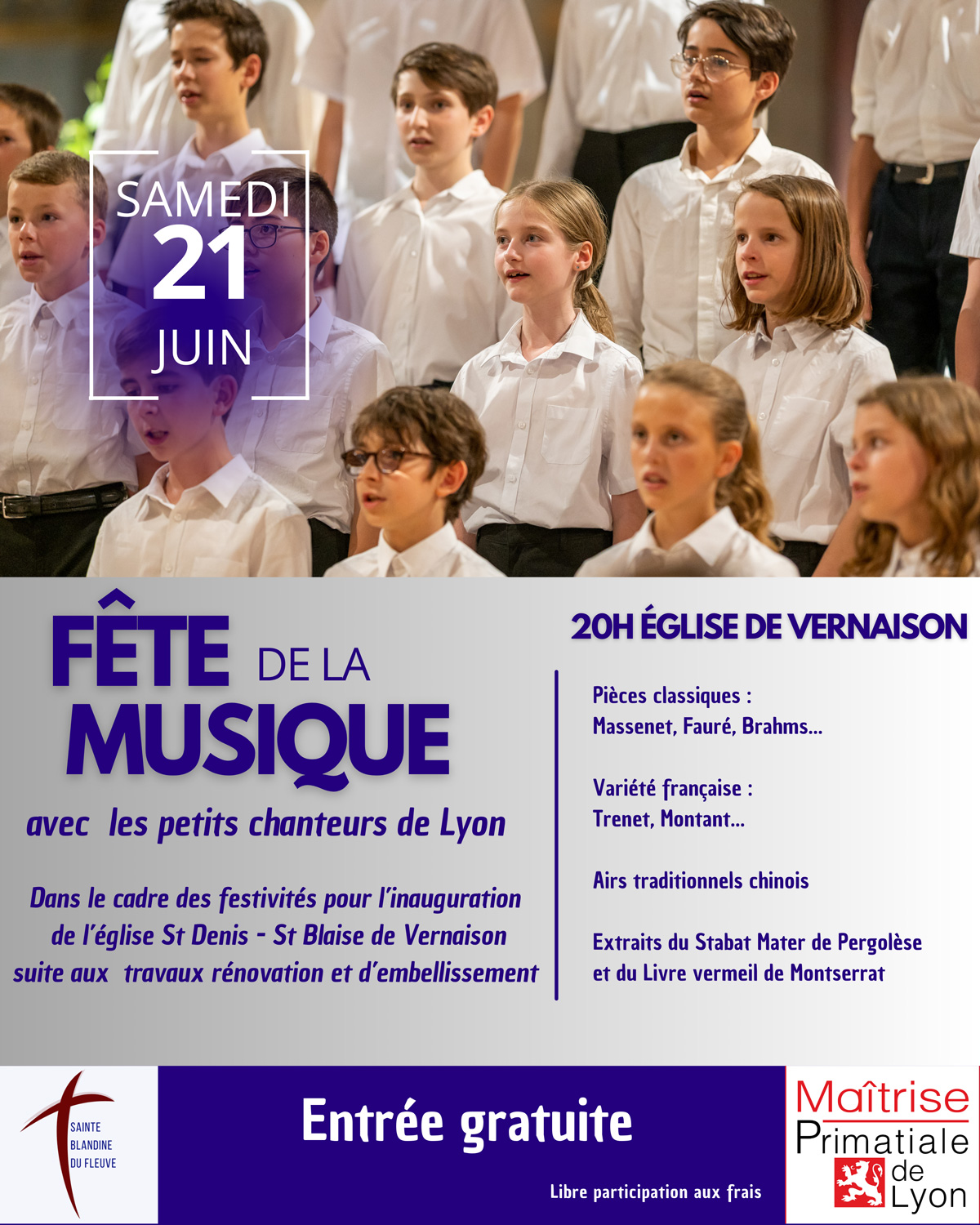 Samedi 21 juin à 20h  :  Grand concert avec les petits chanteurs de Lyon, plus de 100 choristes !