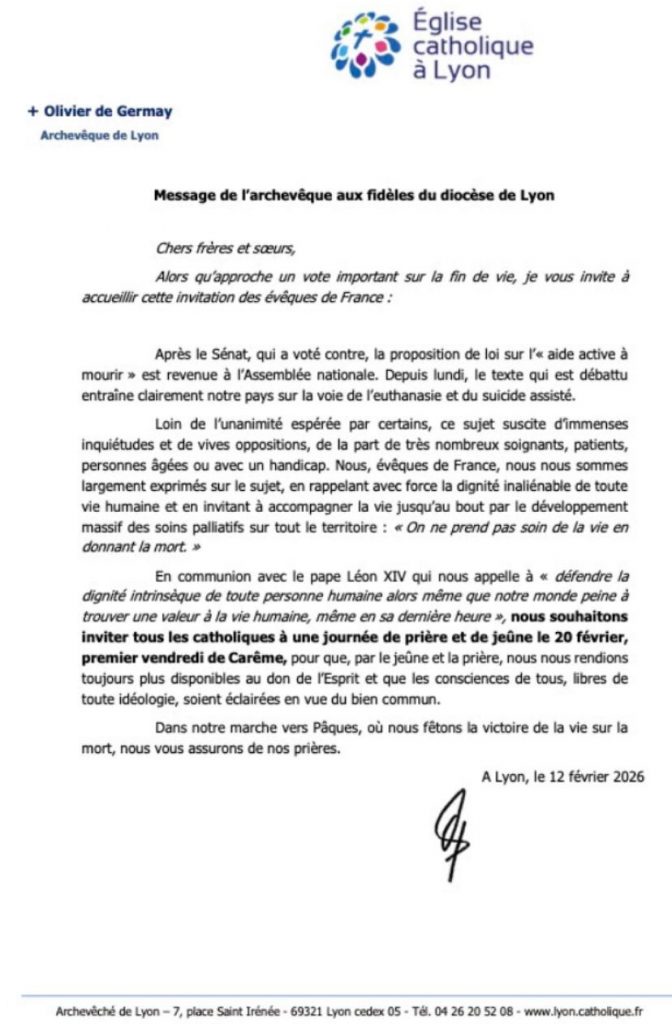 Lettre de notre évêque Mgr de Germay
