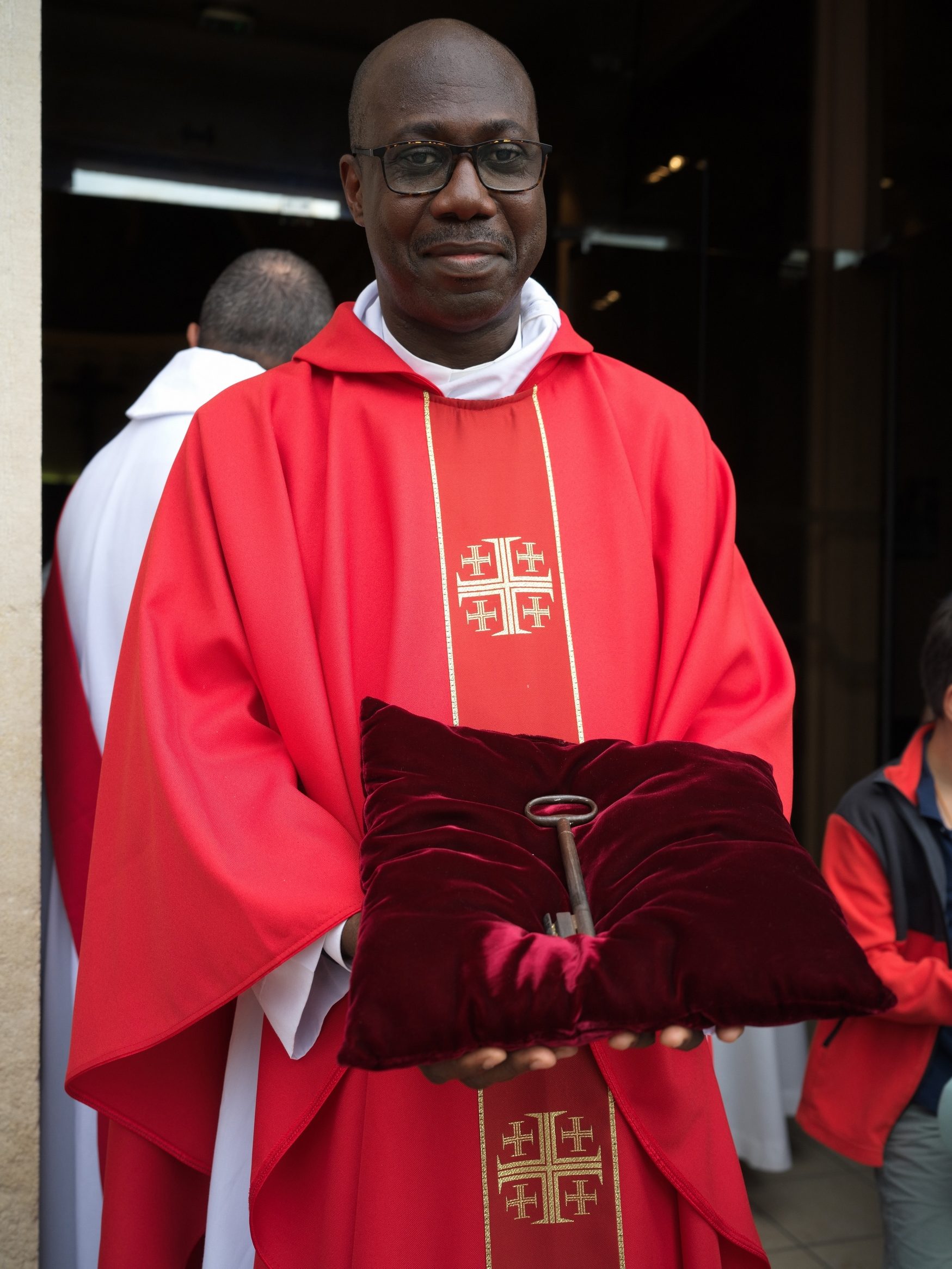 Du nouveau dans la paroisse ! Le Père Sylvain KONAN a été installé curé de la paroisse. Il en a reçu symboliquement la clef en l’église de Vourles, le dimanche 14 sept. 2025. Le Père Matthieu THOUVENOT, vicaire général du diocèse de Lyon présidait la cérémonie en présence des maires des quatre villages.